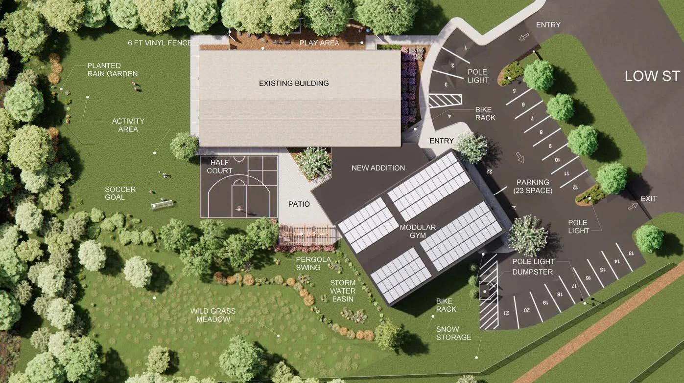 The City of Newburyport is moving forward with construction of a new Recreation and Youth Services Center at 59 Low Street, designed to serve residents of all ages with expanded programming and modern, flexible space. The project will renovate the existing city-owned building and add a new 4,000+ square foot modular gymnasium.